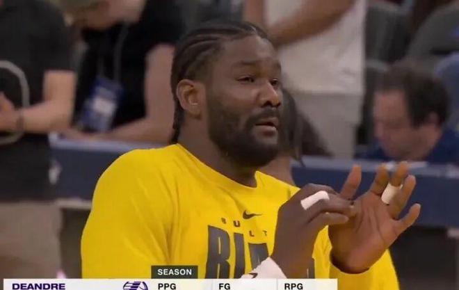 艾奶奶半场首发出战13分钟,投篮4中1,仅拿到2分5篮板的数据。
